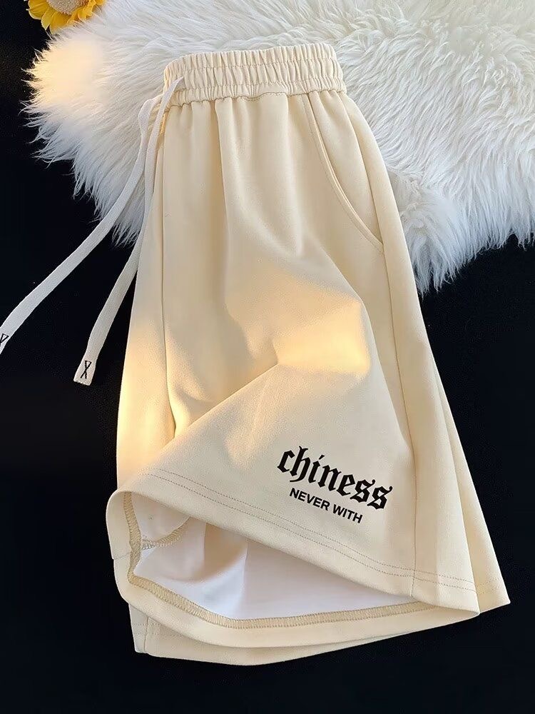 Brand : IL SARTO Material : Cotton Polyester Shape : Straight pants Pants Length: crotch Pants Version : loose Color : Cream InnerLining : No Weight : Light weight Style : College Popular element: Printing Elasticity : Micro elastic Function : No ironing