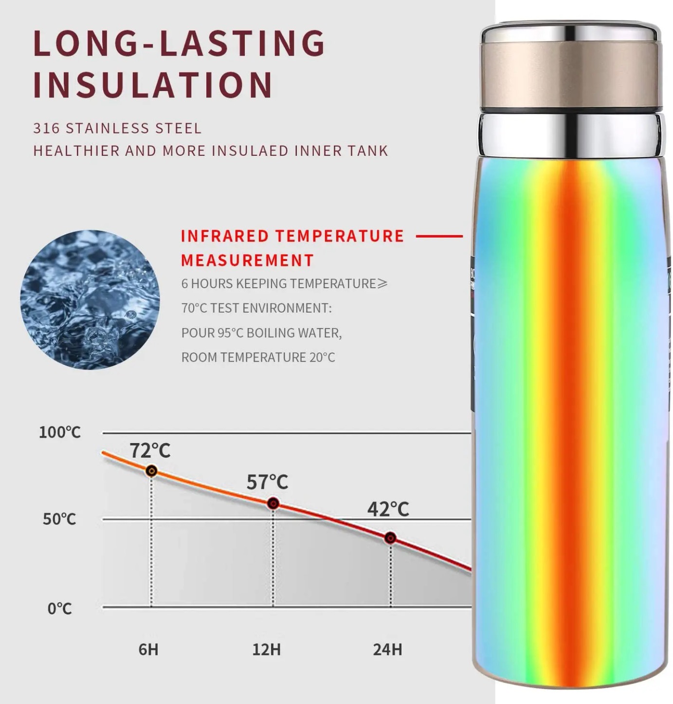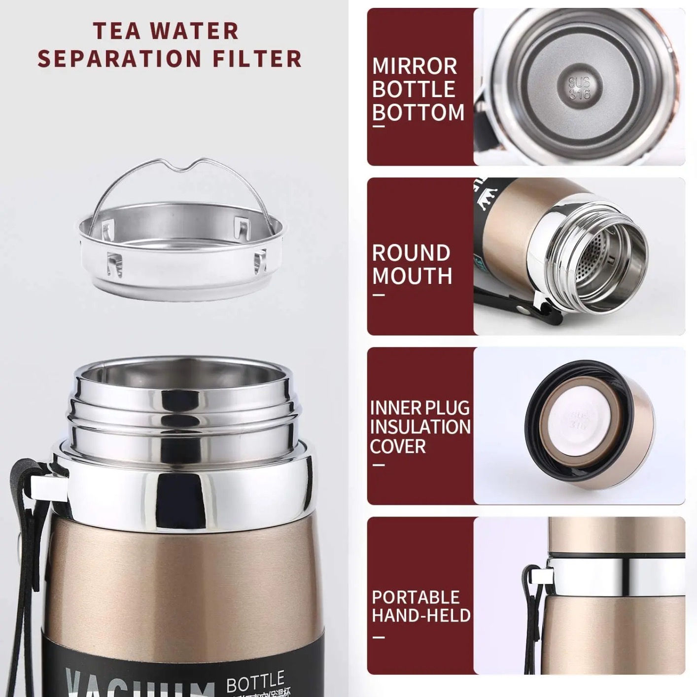 1000ml large capacity stainless steel thermos portable vacuum flask Thermal insulation performance: 6-12 hours Bottle type: vacuum Shape : bullet Metal type: stainless Capacity: 1000ml Size: D7*24 Weight: 0.3kg