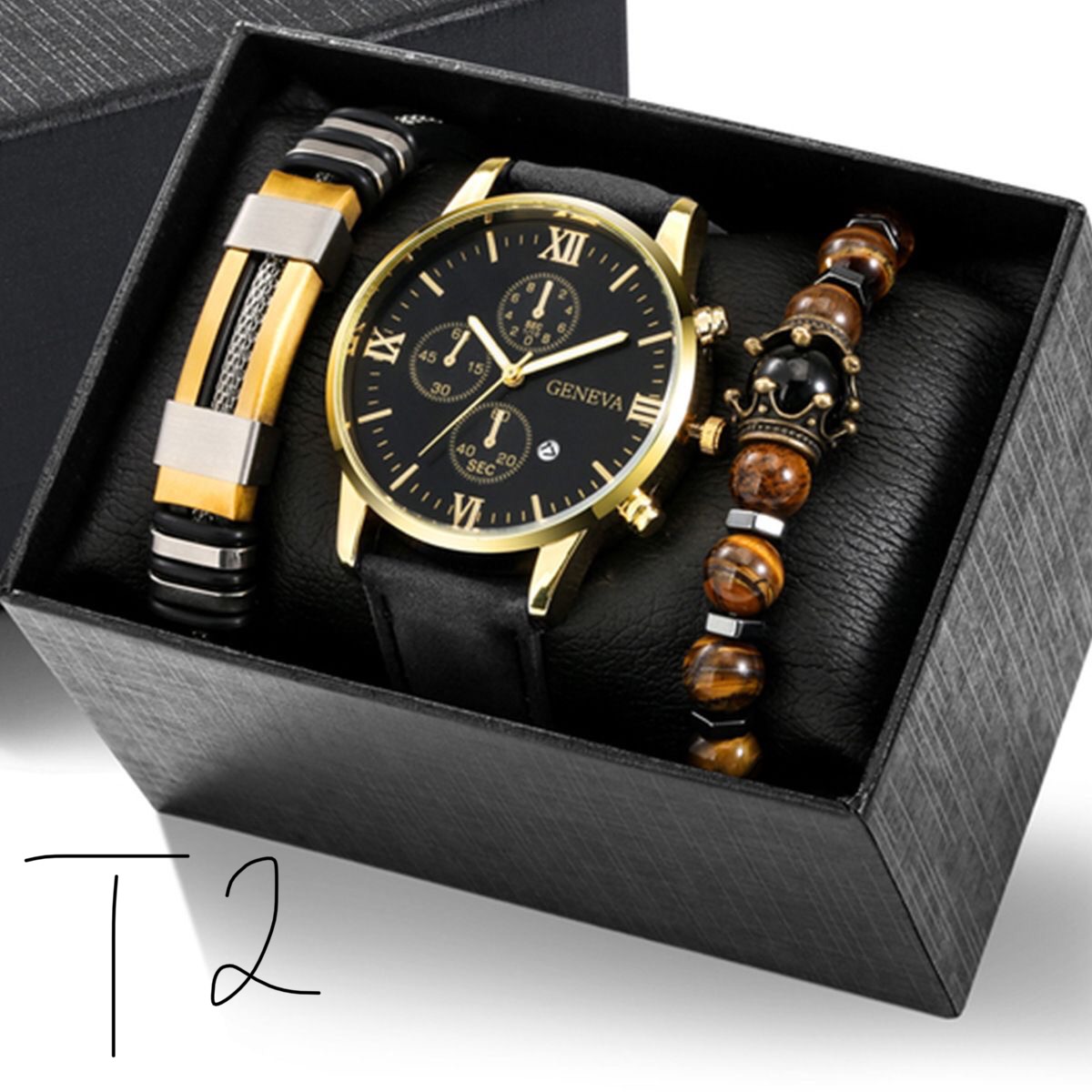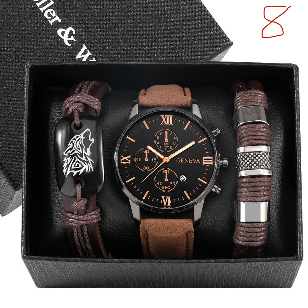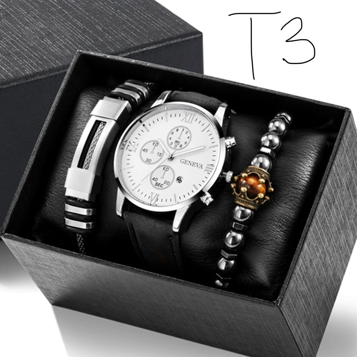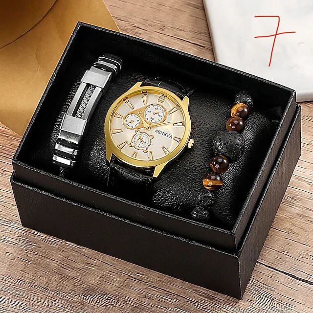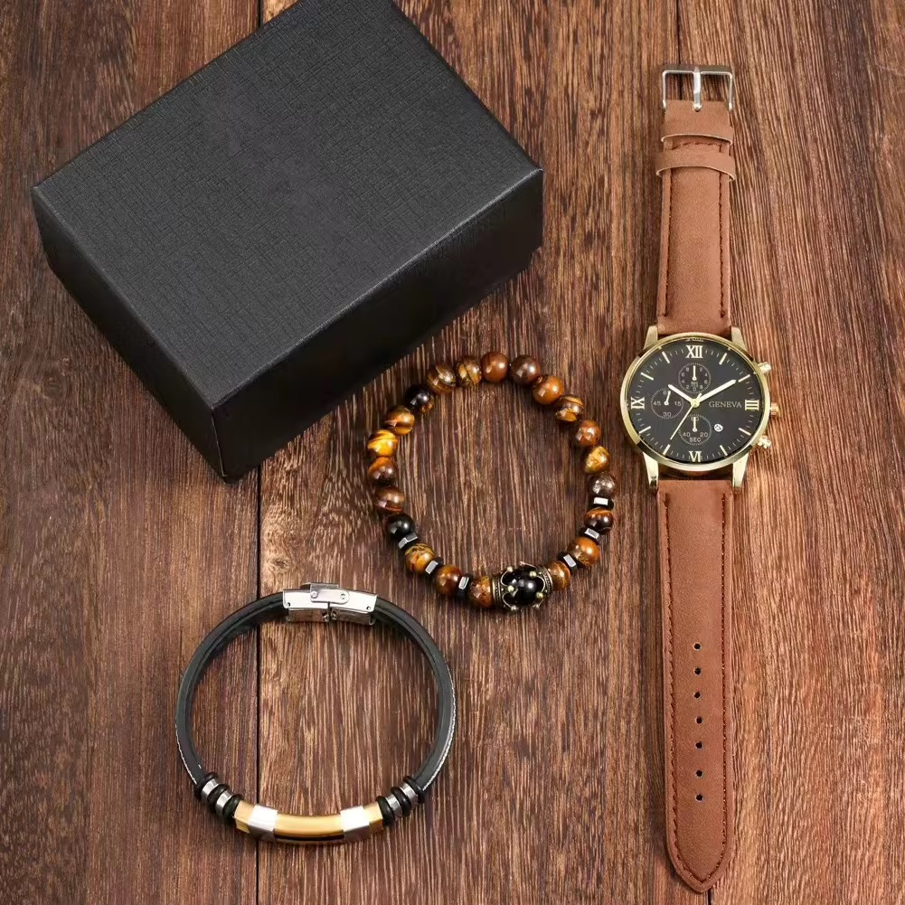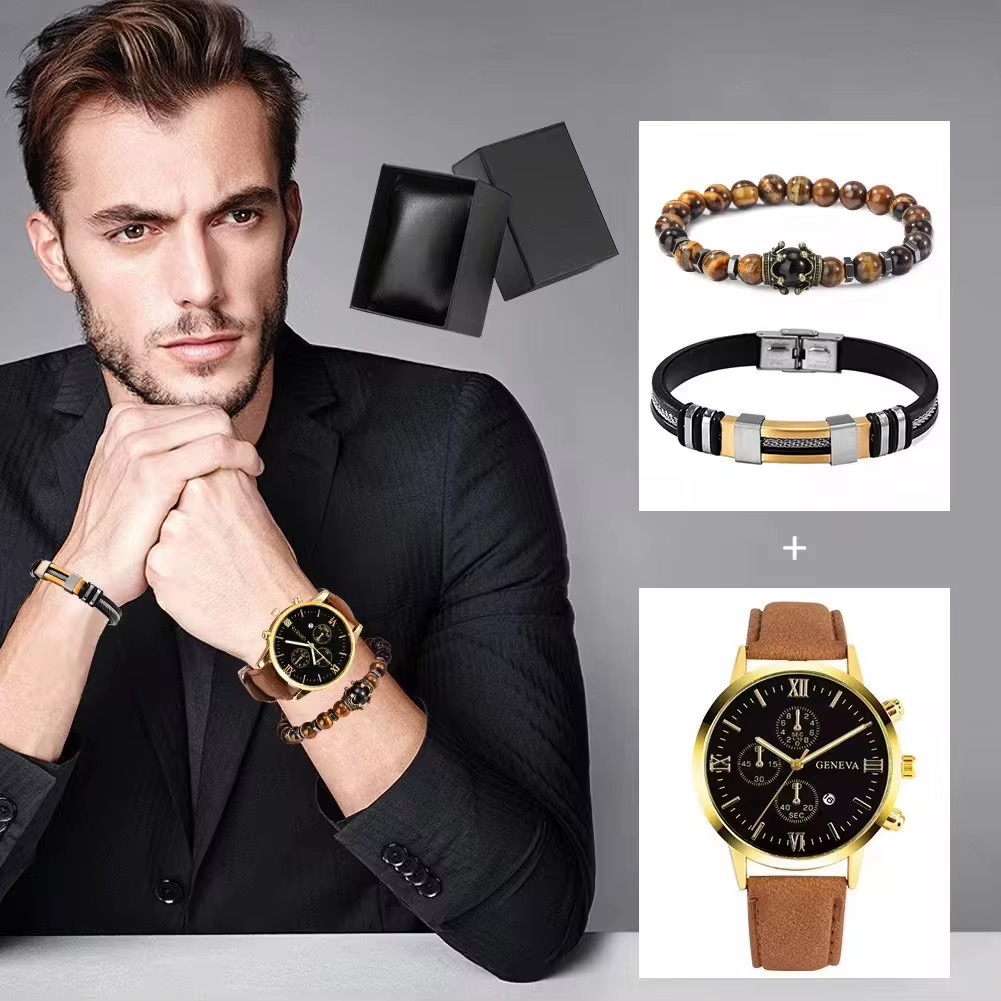 2025 hot selling Wooden Bracelet Dangle Man Fashion 3pcs stainless Steel Window material : Glass material type : PU Case Material : Alloy Case Shape : round band lengh : 24cm Dial diameter : 40mm band width 18mm case thickness : 10mm Material : stainless weight : 0.1kg