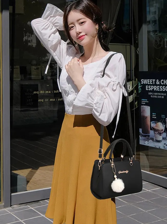 2024 ladies High Quality Hot Selling Trendy latest designer Bag material: PU leather Decoration: lock, hair ball Place of Origin: China shape : casual tote lining material: Dacron Closure: zip weight : 0.6kg size : 24*13*18cm