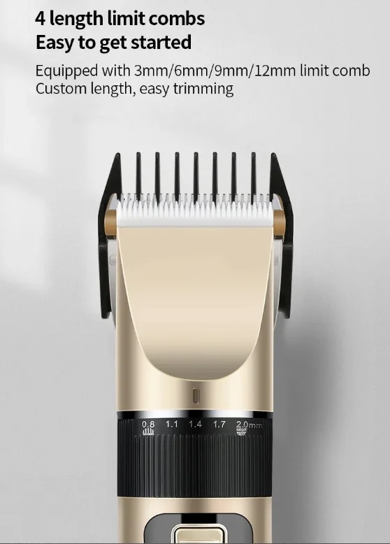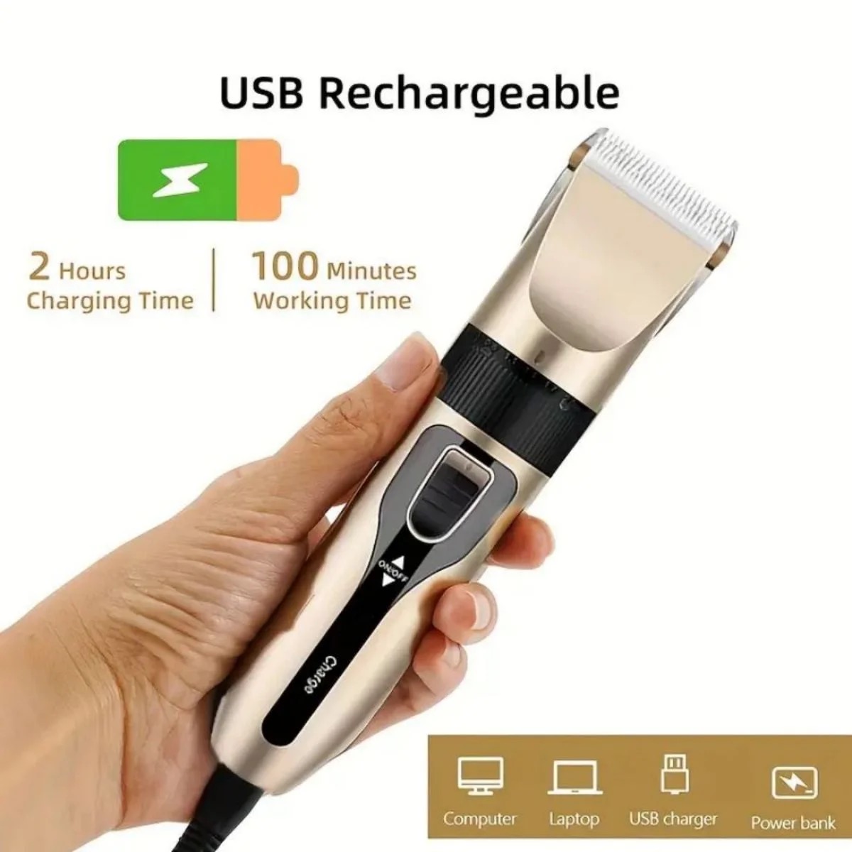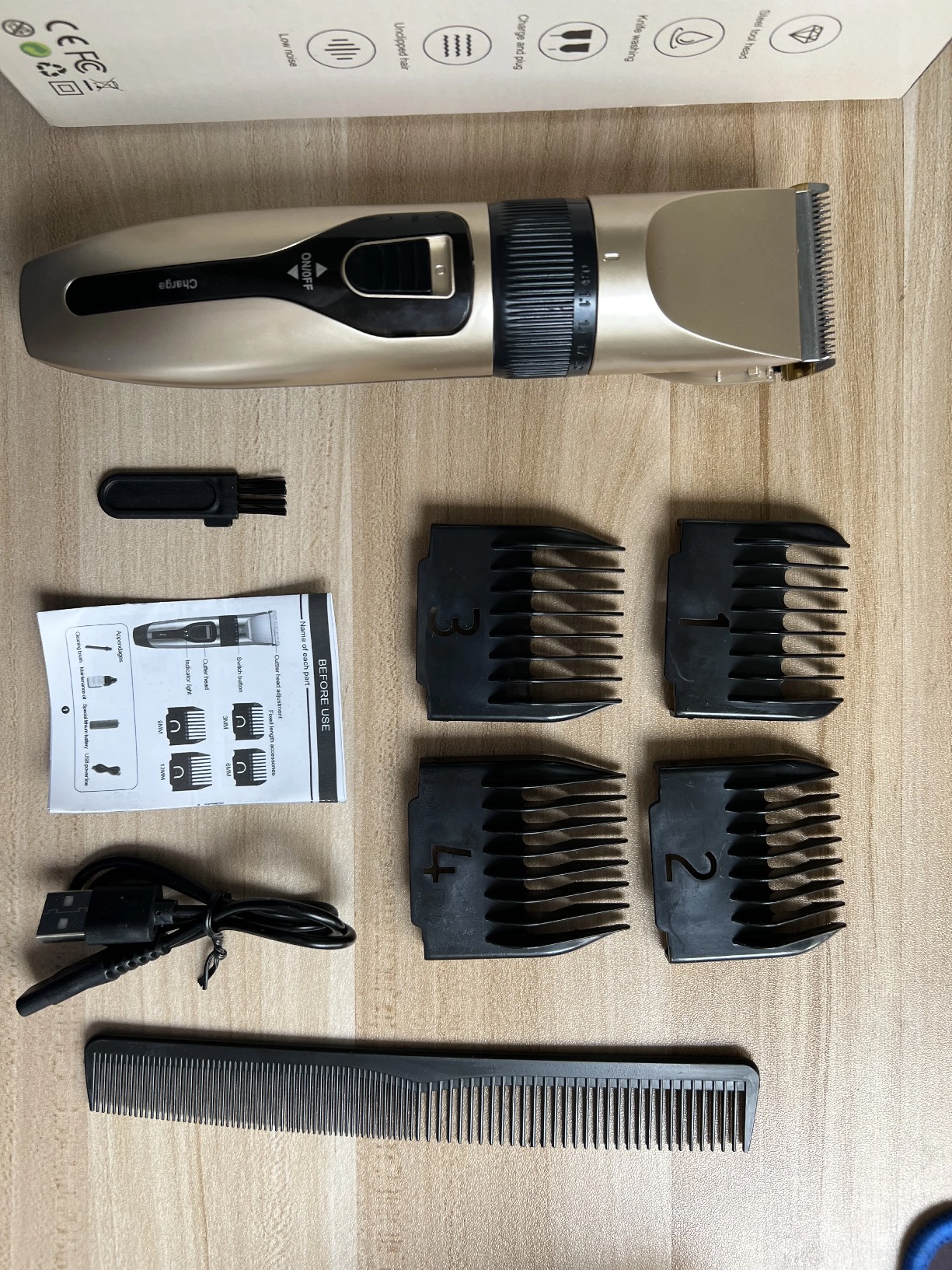 Chargeable electric hair trimmer Blade Material: Stainless Maximum Runtime : 61-90min Power Source: Usb Power Supply : Electric Battery : 1200mah working Time : 120-190mins weight: 0.6kg Size : 21*12*5 cm