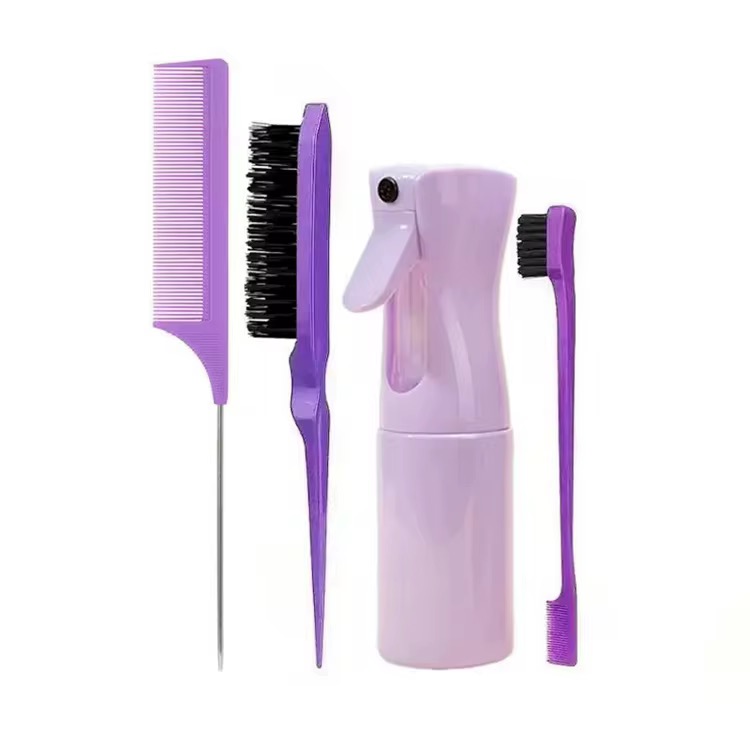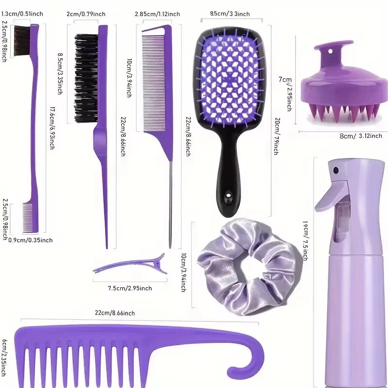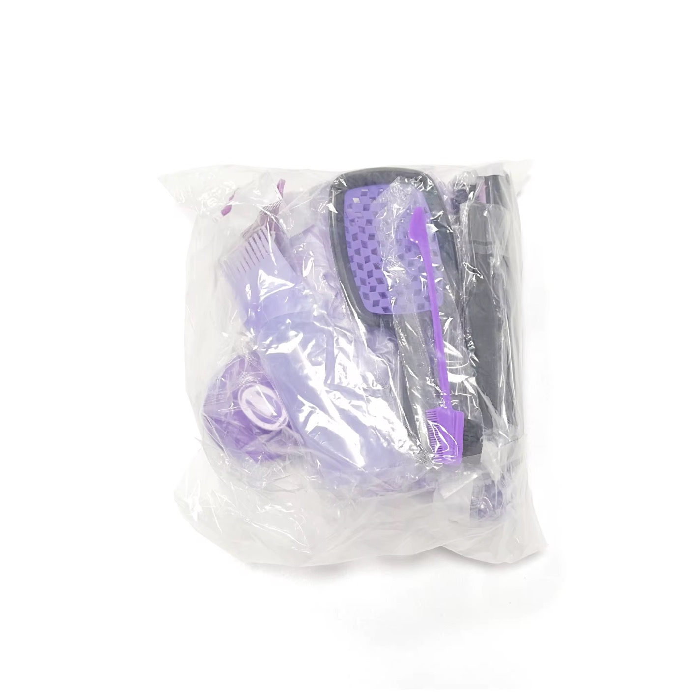 27 Pieces of Hair dressing kit Material : ABS Plastic Color : Black, Purple, Pink Quantity : 25ps Bottle : Silicon Size : 0.6kg