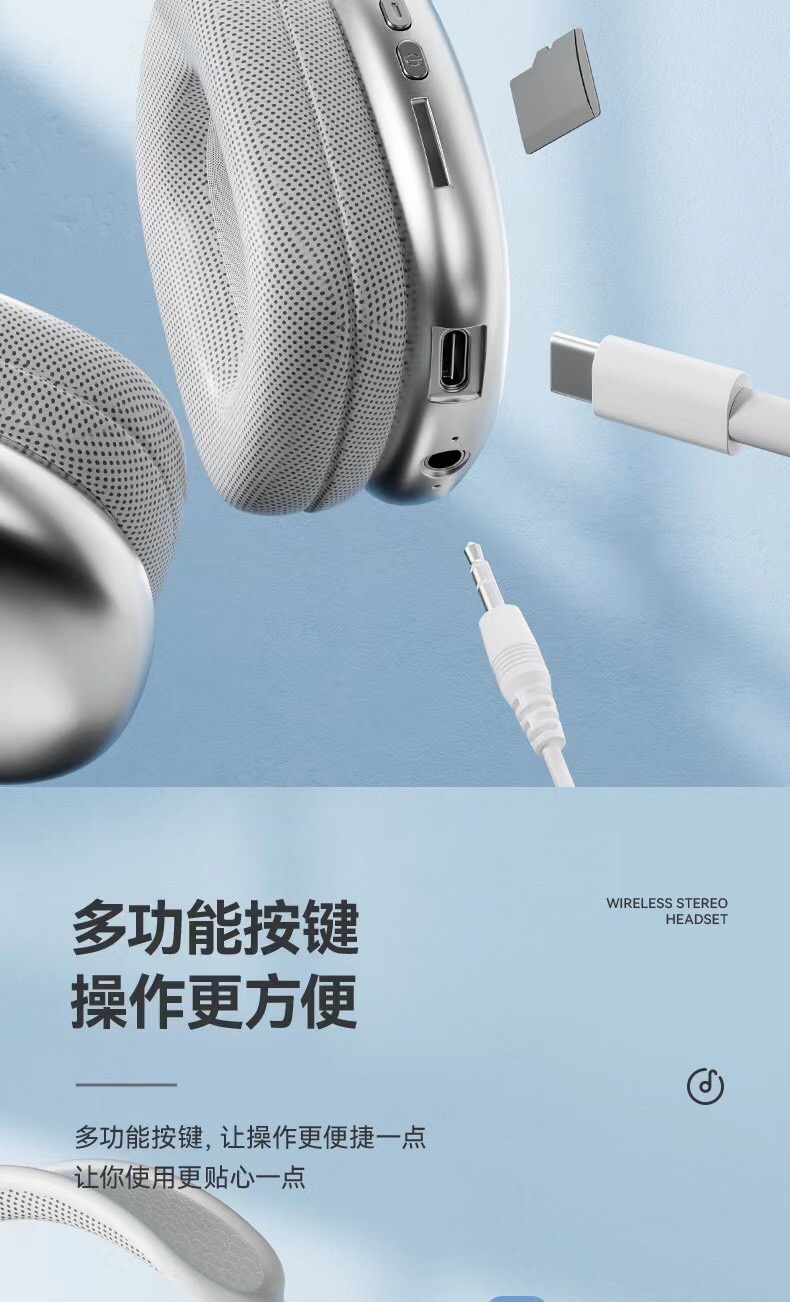 Wireless Bluetooth P9 Pro headphone, Bluetooth standard : Bluetooth v5.3 Battery Indicator : LED Chipset : JL Place of Origin : China Play time : 14hrs Charging Time : 2hrs Battery Capacity : 400mAh Speaker Size : 40mm Weight : 0.5kg