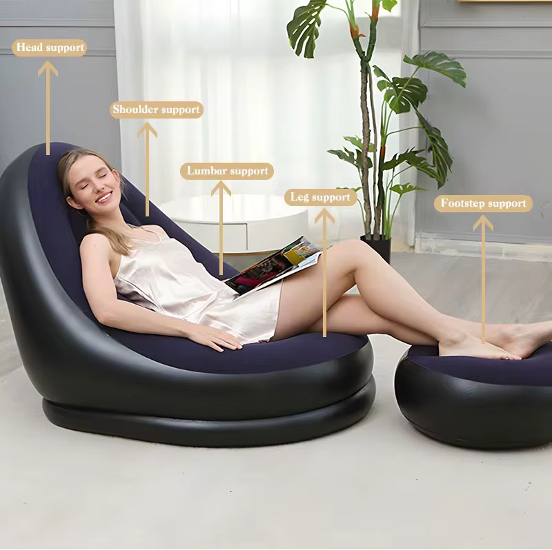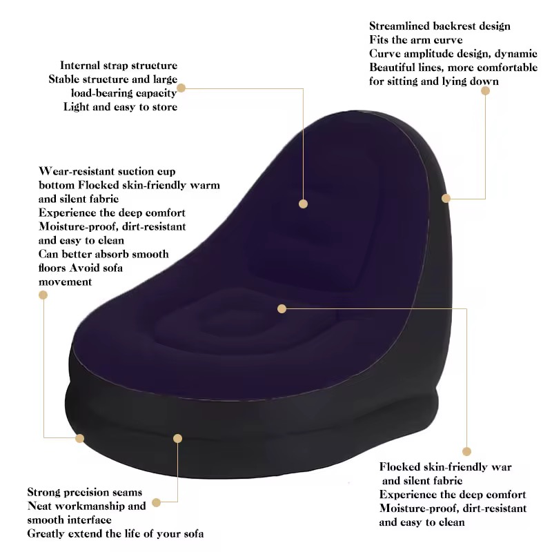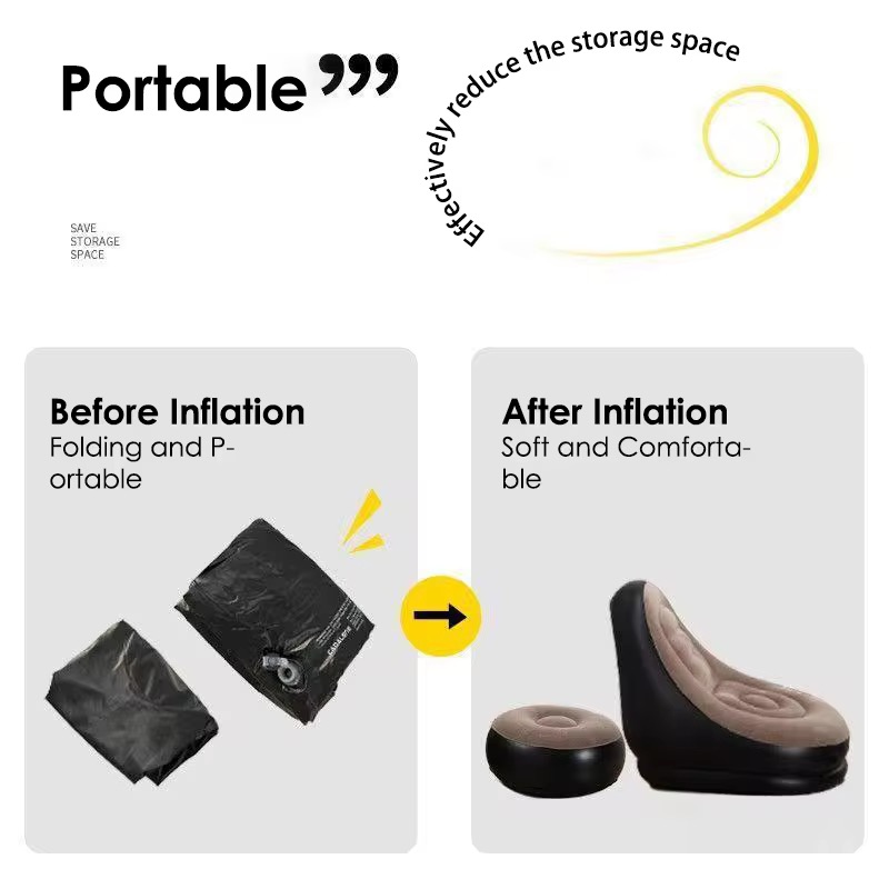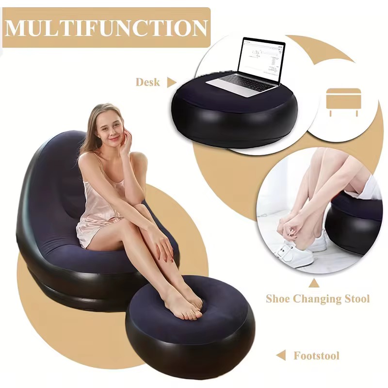 2 piece set Air Inflatable Lazy Sofa Leisure Lounge Chair Material: PVC, Flocking technics : knitted Upholstery Material : Microfiber Fabric Shape : U-Shape Filling Material : Air Colors : Khaki, Dark Purple, red Accessories : Foot Pump Size : 62*25*56cm Weight : 1.7kg