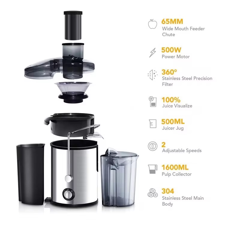 Centrifugal Juicer multifunctional household Electric Fruit juicer Speed : 20001-22000rpm Blade Type: Single Cutter head Liner Material: Stainless Steel Power : 800W Capacity : 1501ml Voltage : 220v