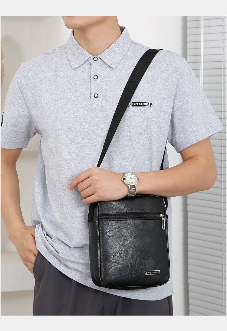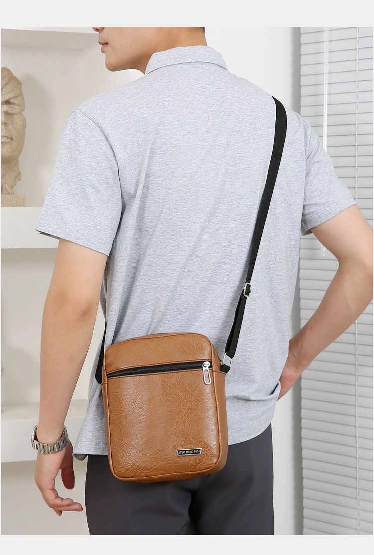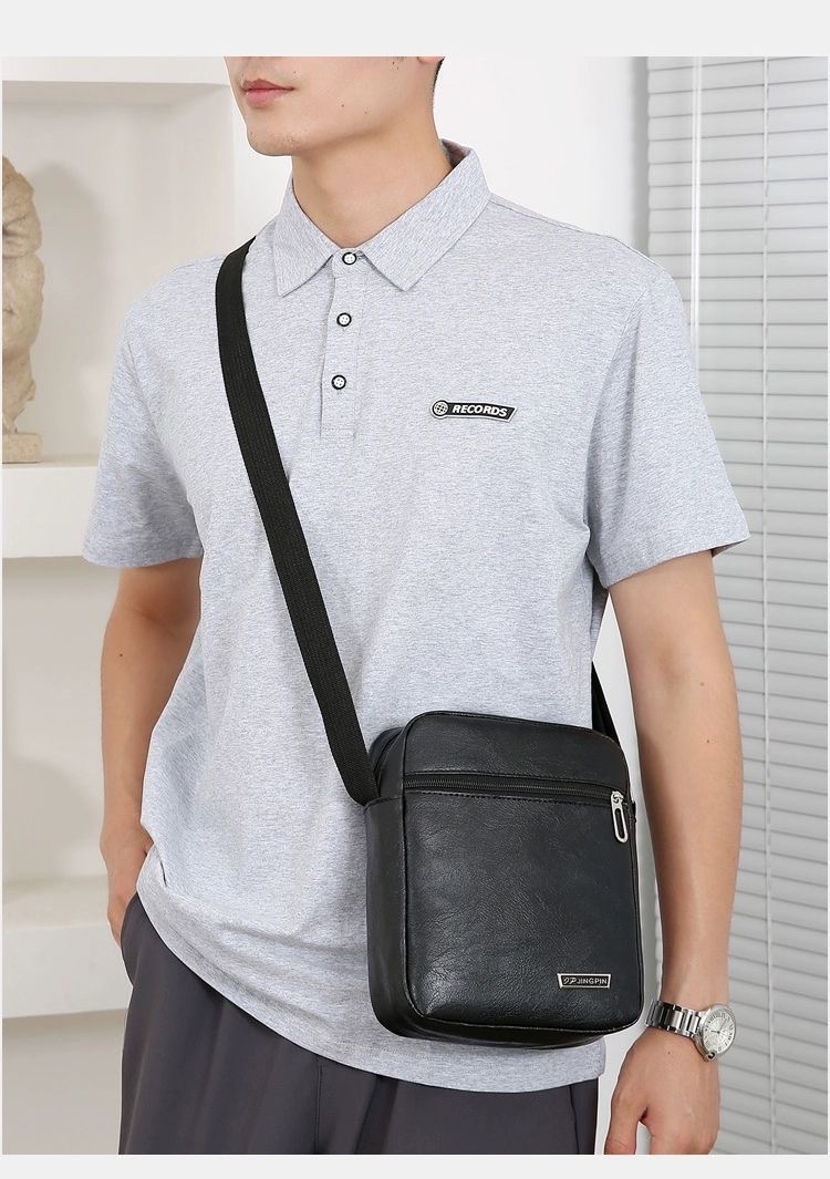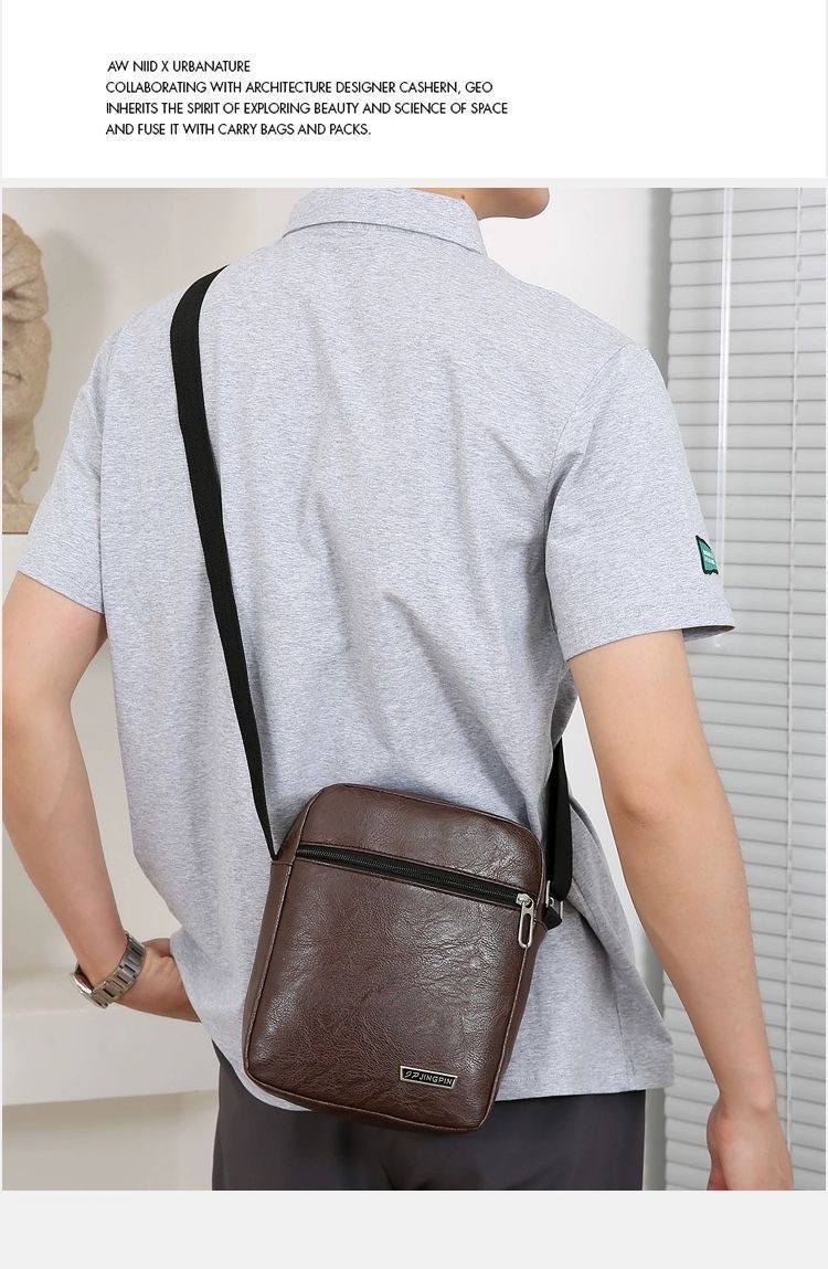 new Trending Sling Shoulder Bag Men outdoor Travel Business Leather PU Bag Material : PU Leather Closure : zip Lining Material: Polyester Style : fashion Feature: Waterproof Size: 19*23*7cm weight: 0.3kg