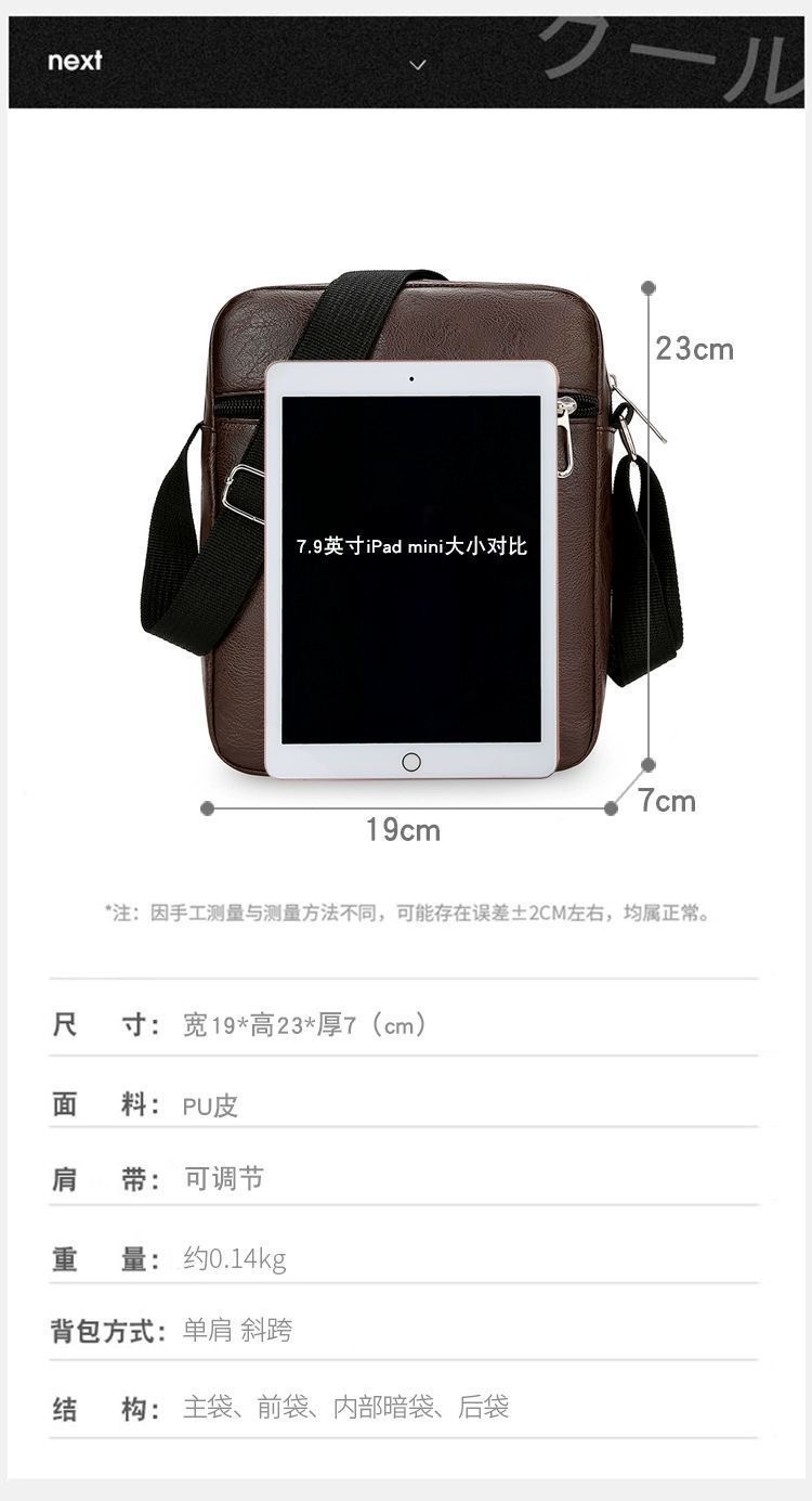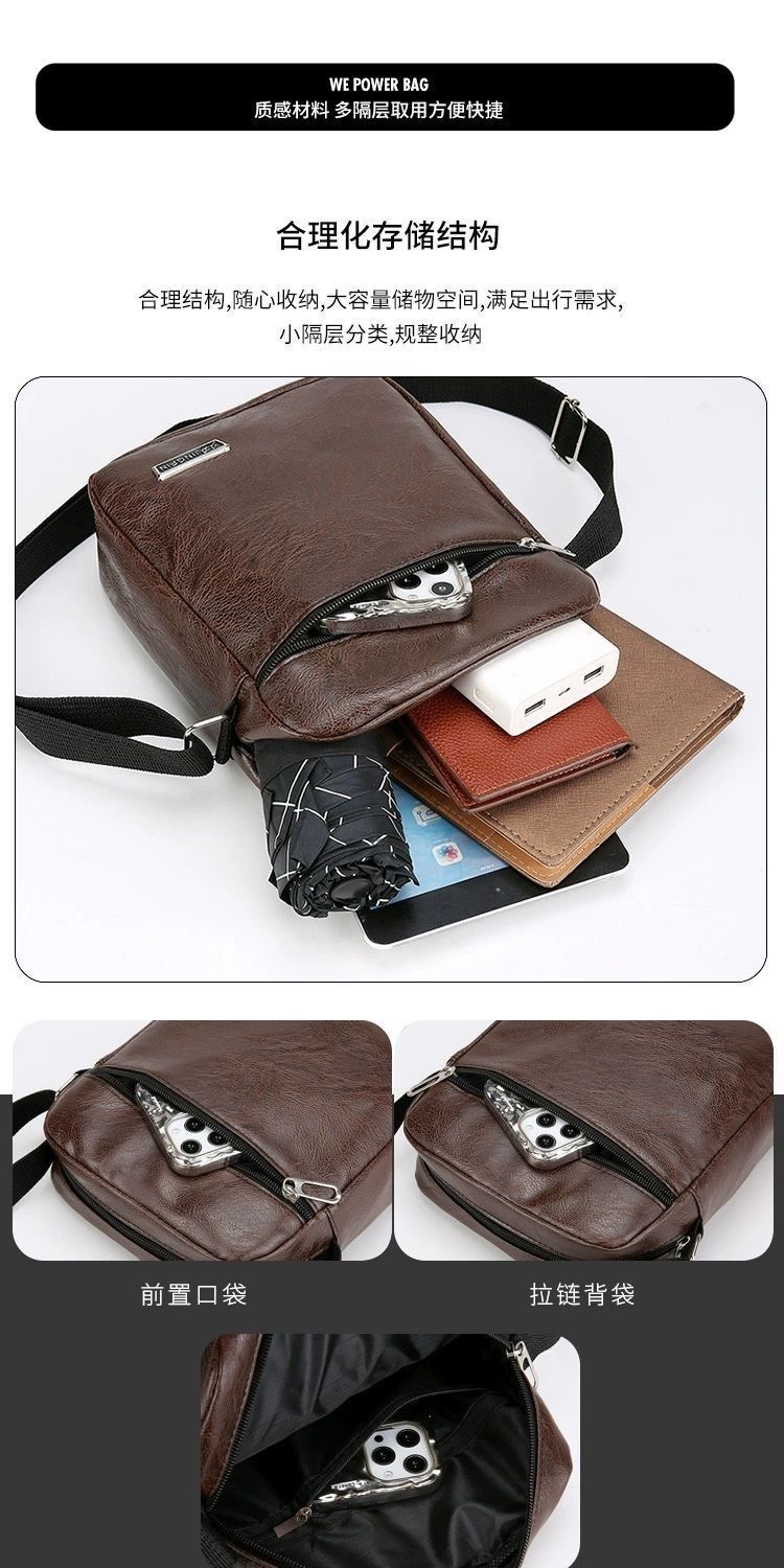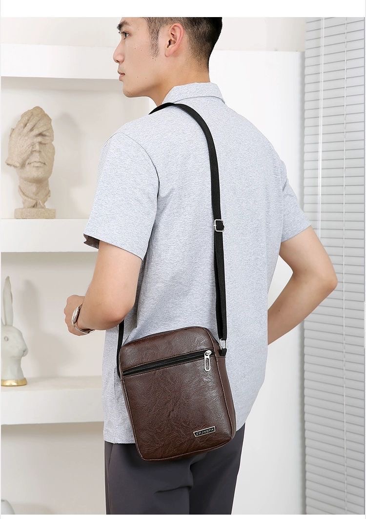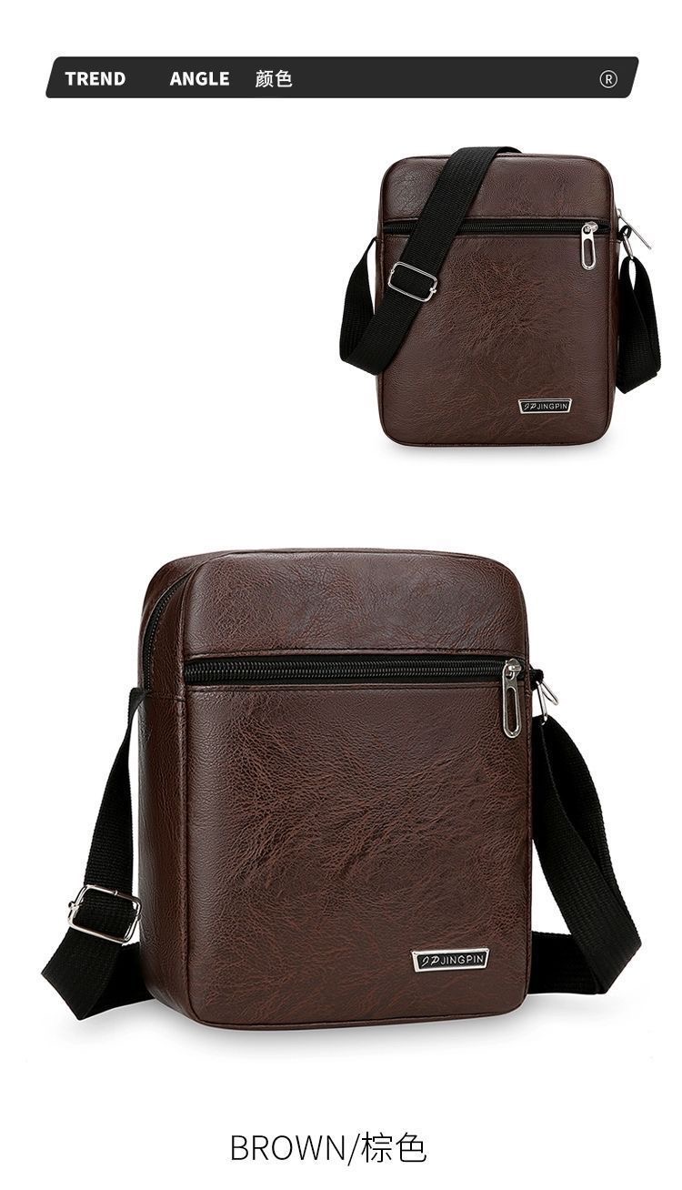new Trending Sling Shoulder Bag Men outdoor Travel Business Leather PU Bag Material : PU Leather Closure : zip Lining Material: Polyester Style : fashion Feature: Waterproof Size: 19*23*7cm weight: 0.3kg