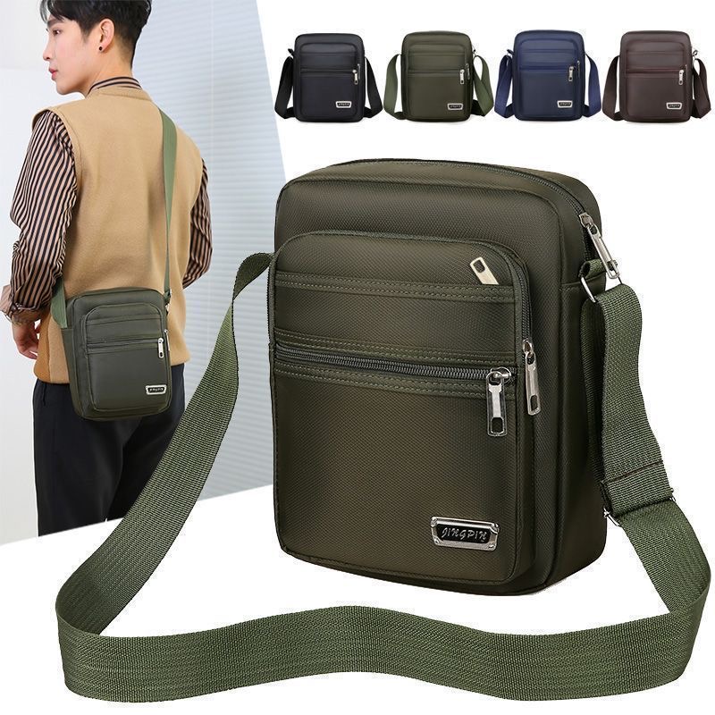 Fashionable Men's Lightweight Crossbody bag Texture : Nylon Material : PU Colosure : Zipper Pattern : Solid color Lining texture : Polyester Color : gray, black, blue Size : 14*5*19 Weight : 0.15kg