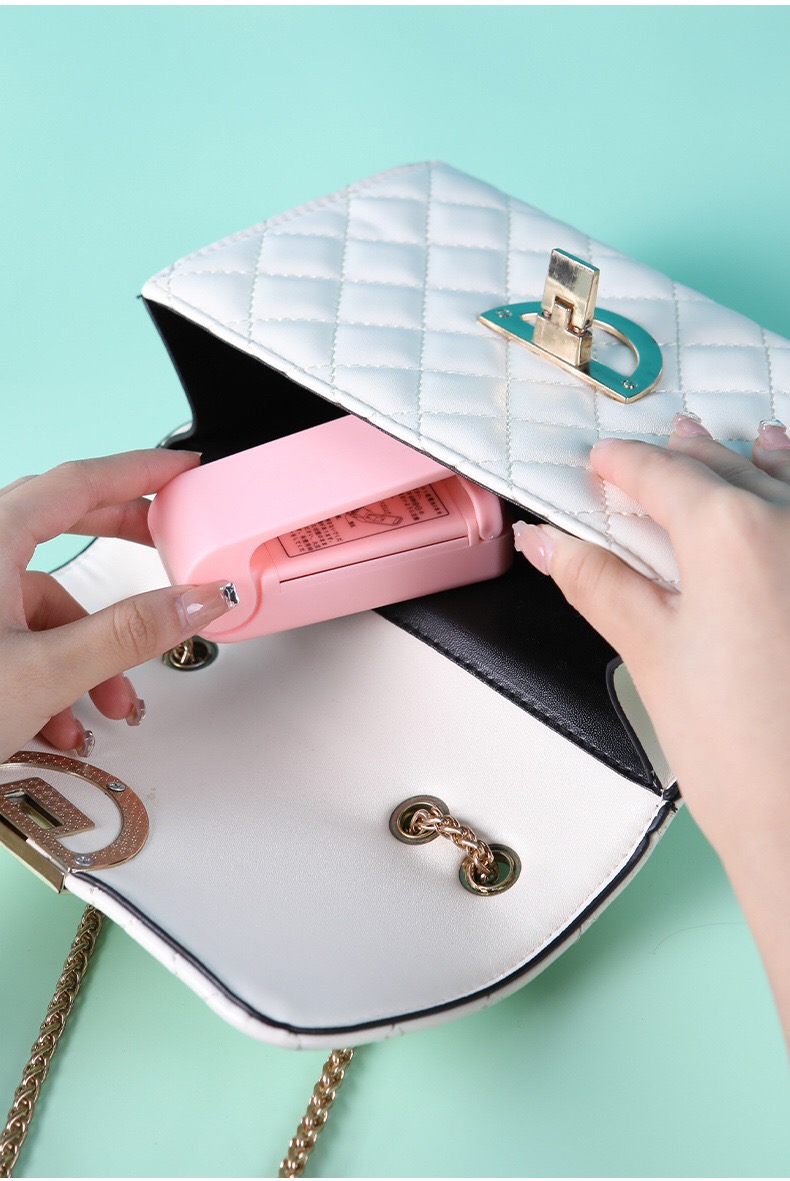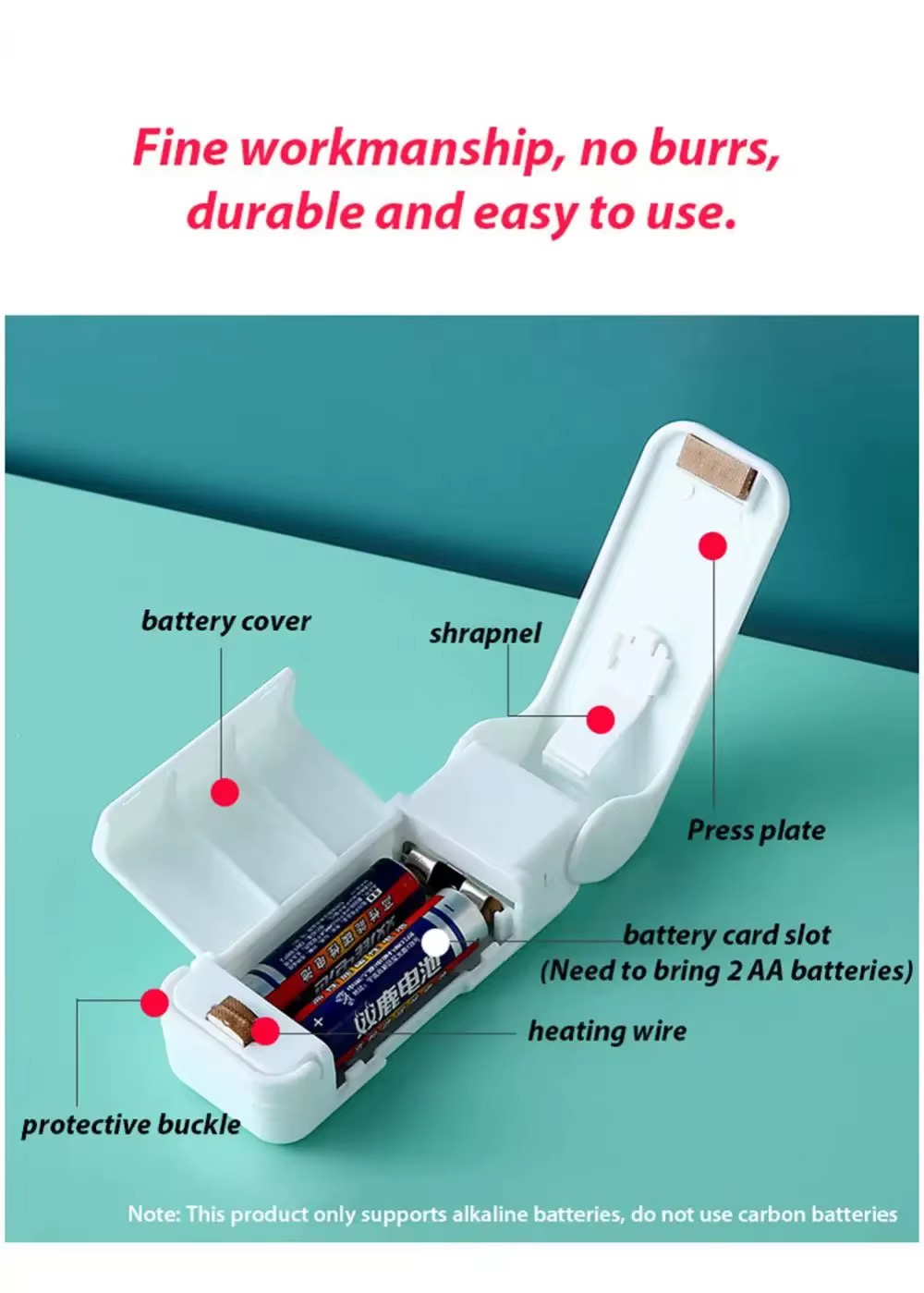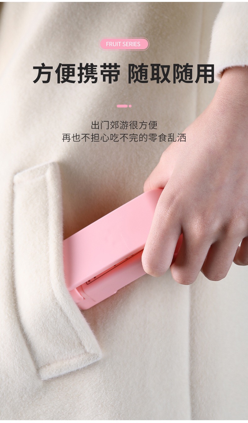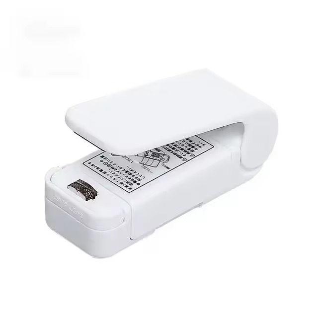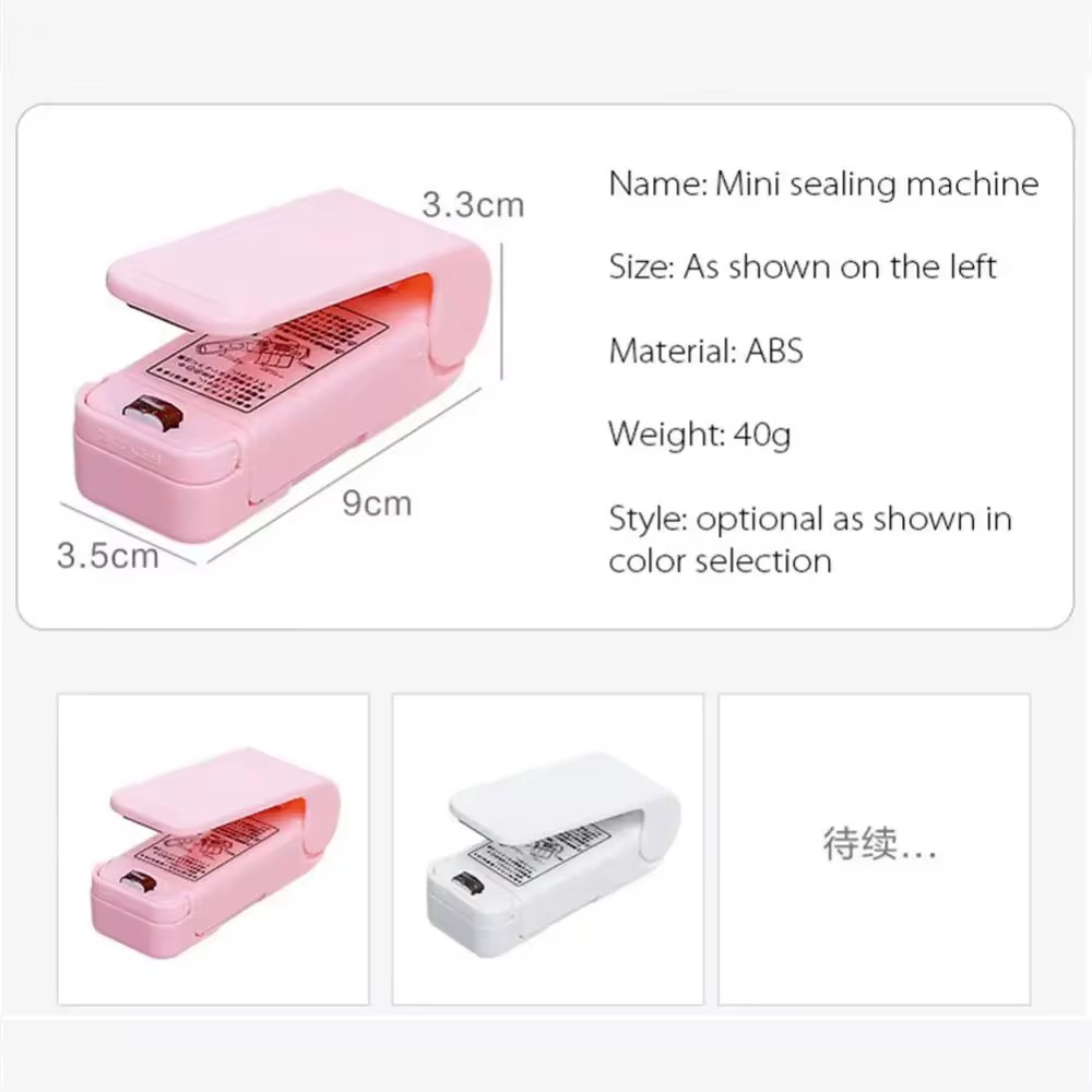 Plastic Portable Mini Hand Pressure Heat sealing Machine Food Plastic bag Application: Kitchen Feature : Durable, Portable Material : ABS Driven Type : Battery Max. Speed : 5mins, 75pcs Size : 13*10*10cm Weight : 0.05kg