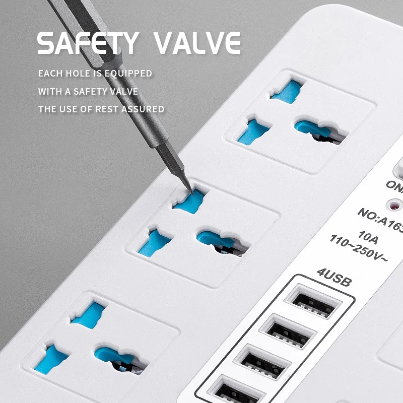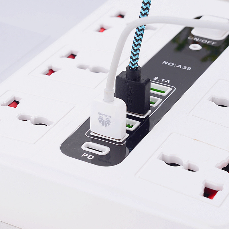 Power Strip With 6-way port Usb+PD Type-c Port with 2m Bold Extension Cord Surge Protector Plug Rated Voltage: AC100-250 Conductor Material: copper Rated Frequency: 50/60HZ Rated power; 2500 Rate current : 10A Usb Port: 5 + type-c port Plug : 2 pins flat