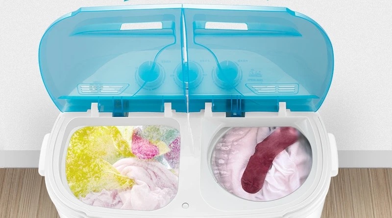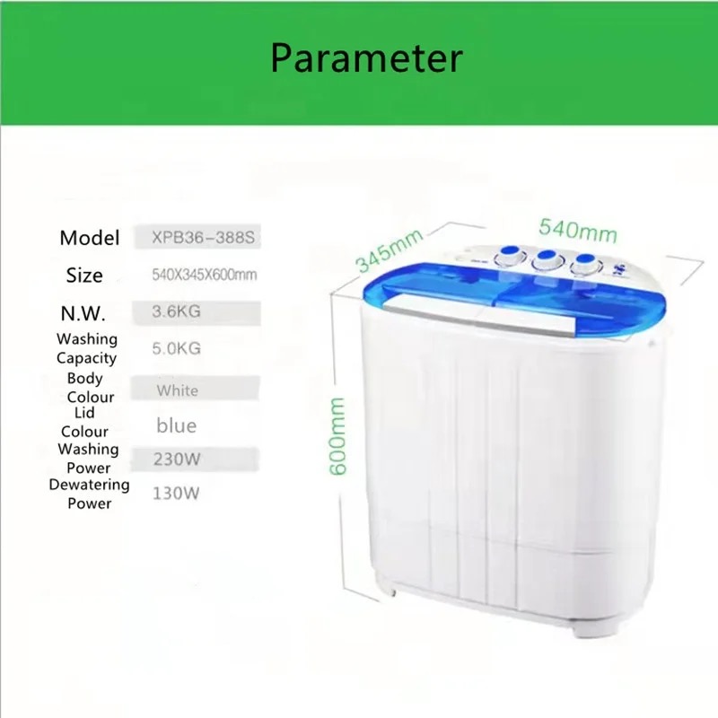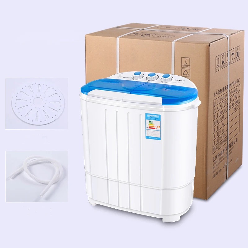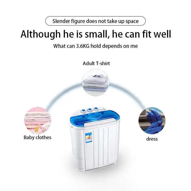Double barrel semi-automatic small washing machine. Double cylinder washing machine Tube material : stainless steel Power source: electric washing Time : 3-15mins Place of origin: Zhejiang, China Loading type: top loading Type: All-in-one washer/ dryer Washing Capacity: 2.2-4.5kg App-controlled : NO Power : 260w voltage : 220-240v Material: Plastic body Weight : 11kg Size : 60*56*35 Tube no. 2