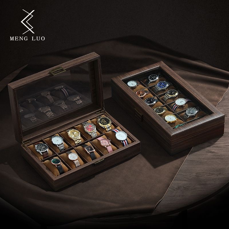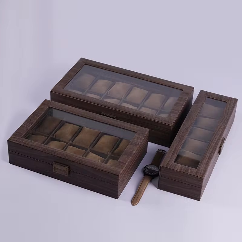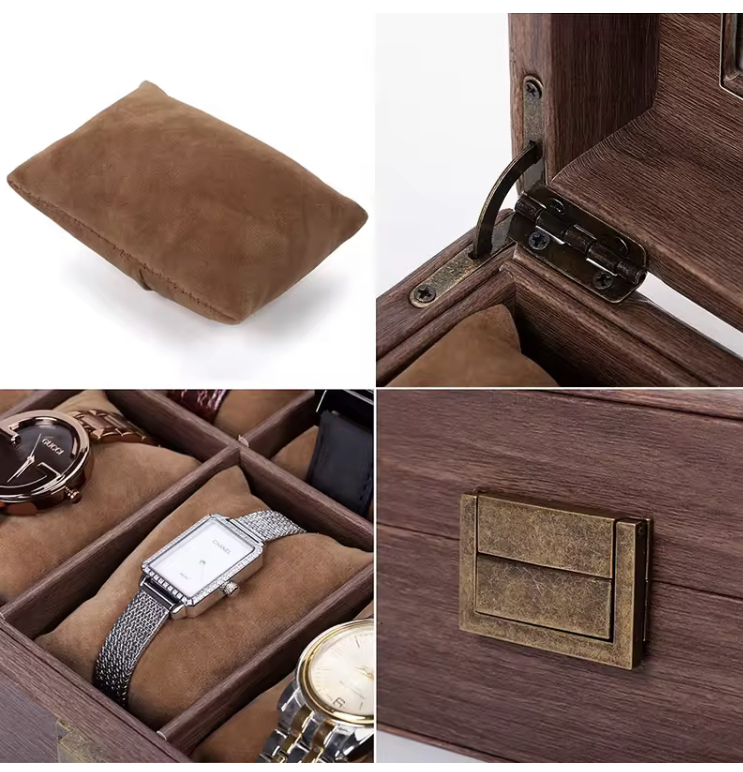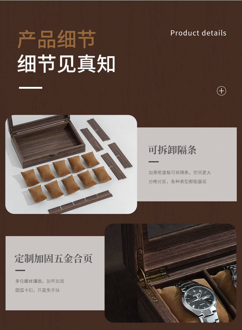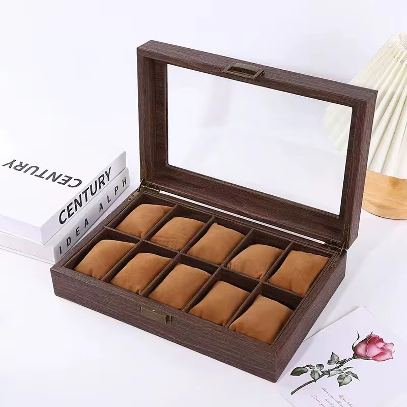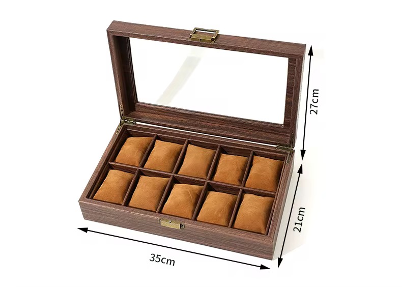 Vintage wooden cover Pu leather 10 slot watch Display Packaging Storage box Box case material : leather Inner Material : velvet Shape : Rectangule Slots : 10 Color : Brown Weight : 1kg+