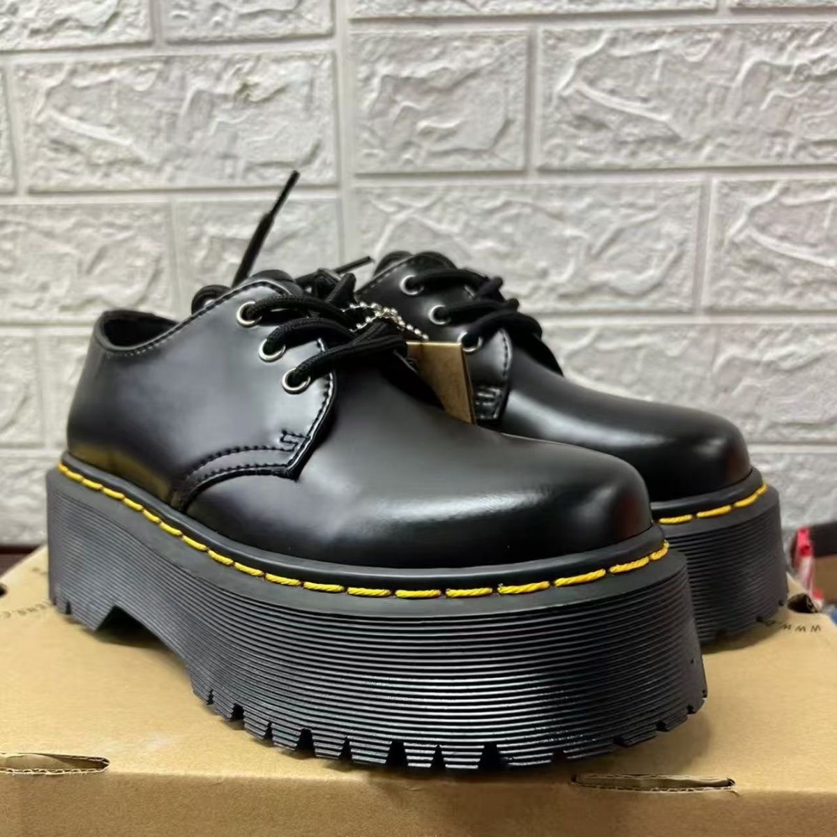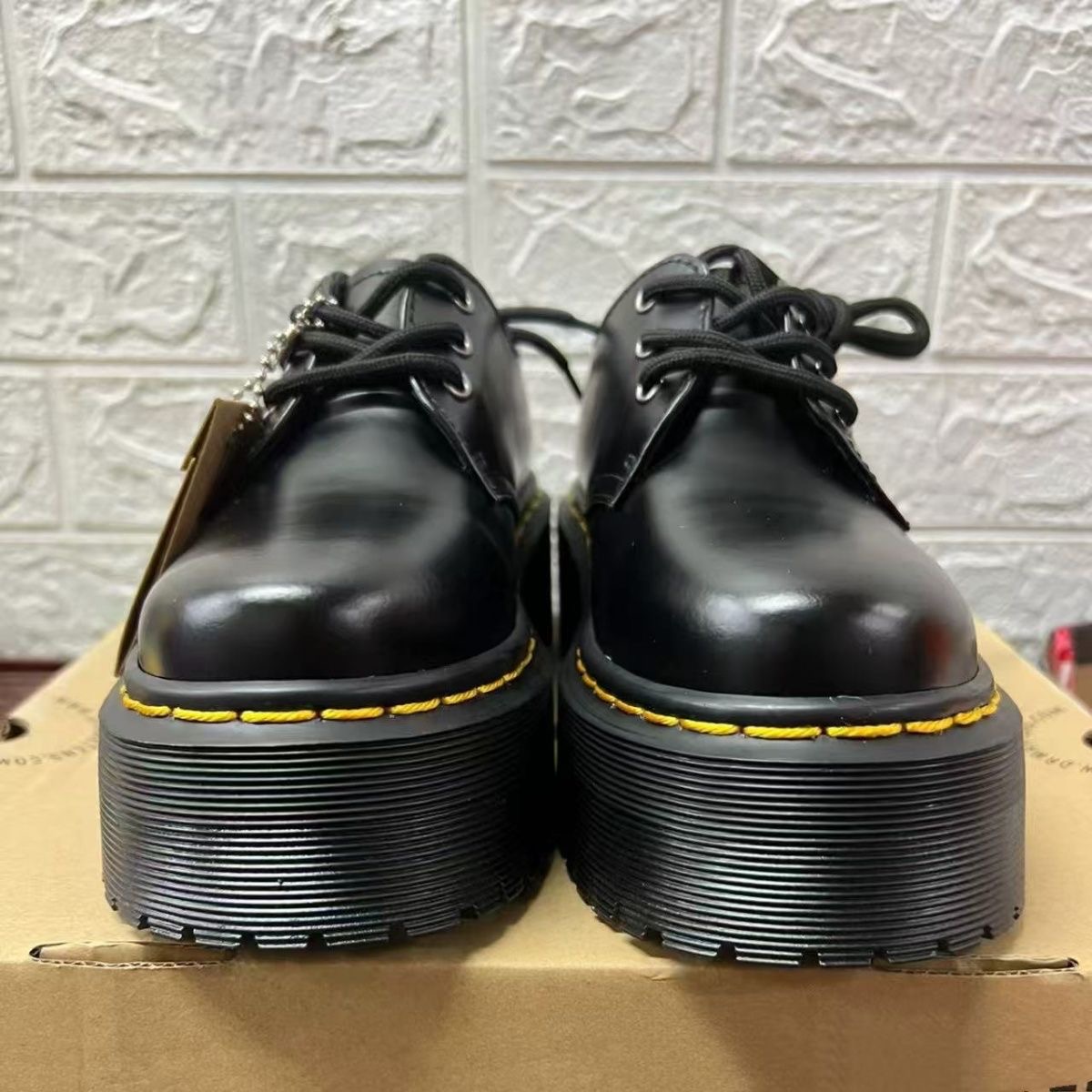 Dr. Marten British University Style Round-toe Simple Thick-Soled Leather Shoe for Men and Women Upper Material : Leather Outsole Material : Rubber Toe Style : Round Style : Lace-up Linig Material : Leather Midsole Material : Rubber Logo Position : Insole, shoe tongue Logo Craft : Embossing Weight : 1.6kg Caution ⛔️ Almost the same as the Original, Name printing errors